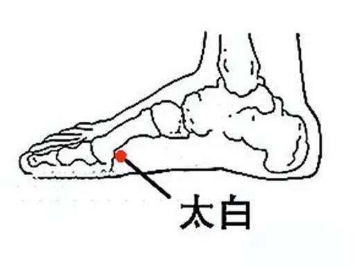 太白穴位于足内侧缘,当第一跖骨小头后下方凹陷处。它对于各种原因导致的胃痛有很好的缓解作用,还能缓解食欲不佳、腹胀,最方便的刺激方法为艾灸。