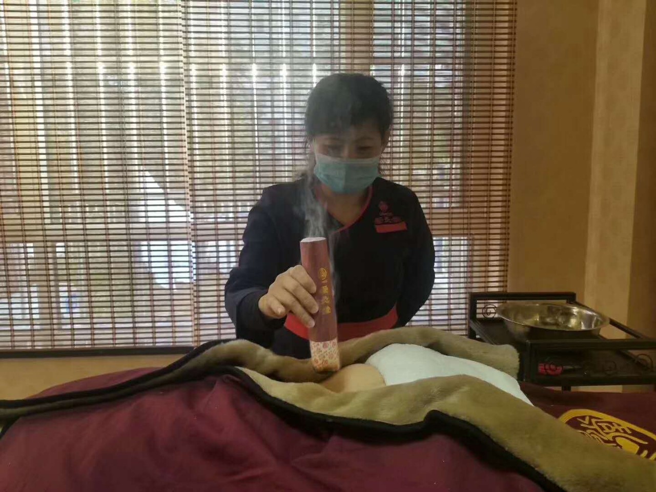 艾灸师正在为顾客做艾灸